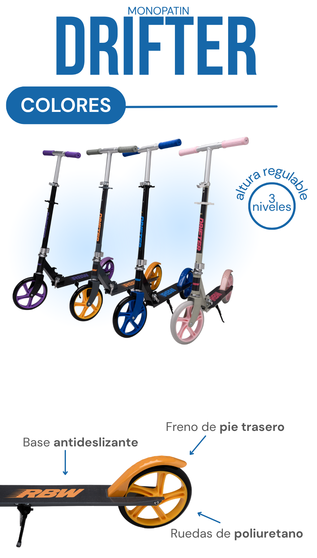 Material del monopatín de pie: aluminio.