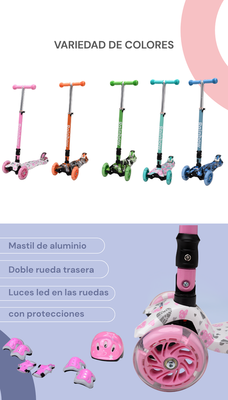 Ruedas LED Auto-alimentadas: Posee luces integradas que se activan con el giro de las ruedas. No requieren pilas ni carga, aumentando la visibilidad y diversión del niño.