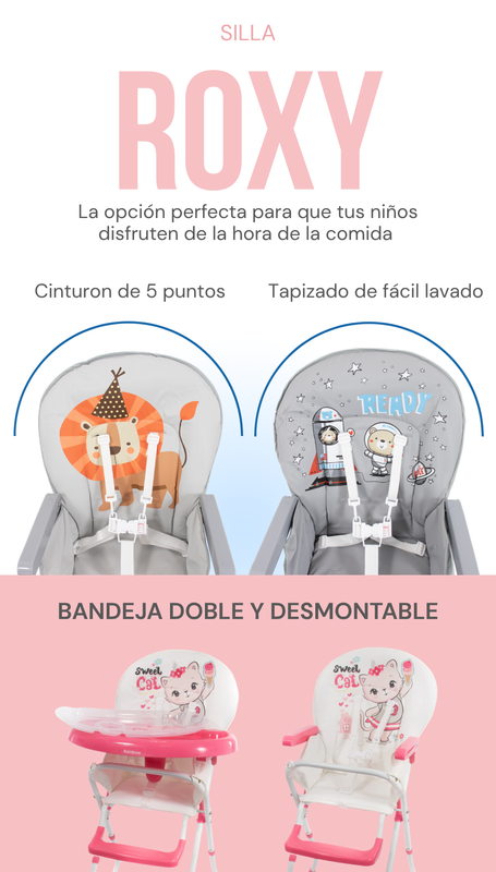 Higiene simplificada: Cuenta con un tapizado completamente desmontable y lavable, junto a una doble bandeja extraíble que facilita la limpieza de restos de alimentos.